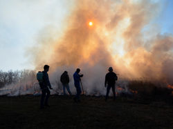 Life being recycled at a tallgrass prairie burn, and the happy being restored to those at work.